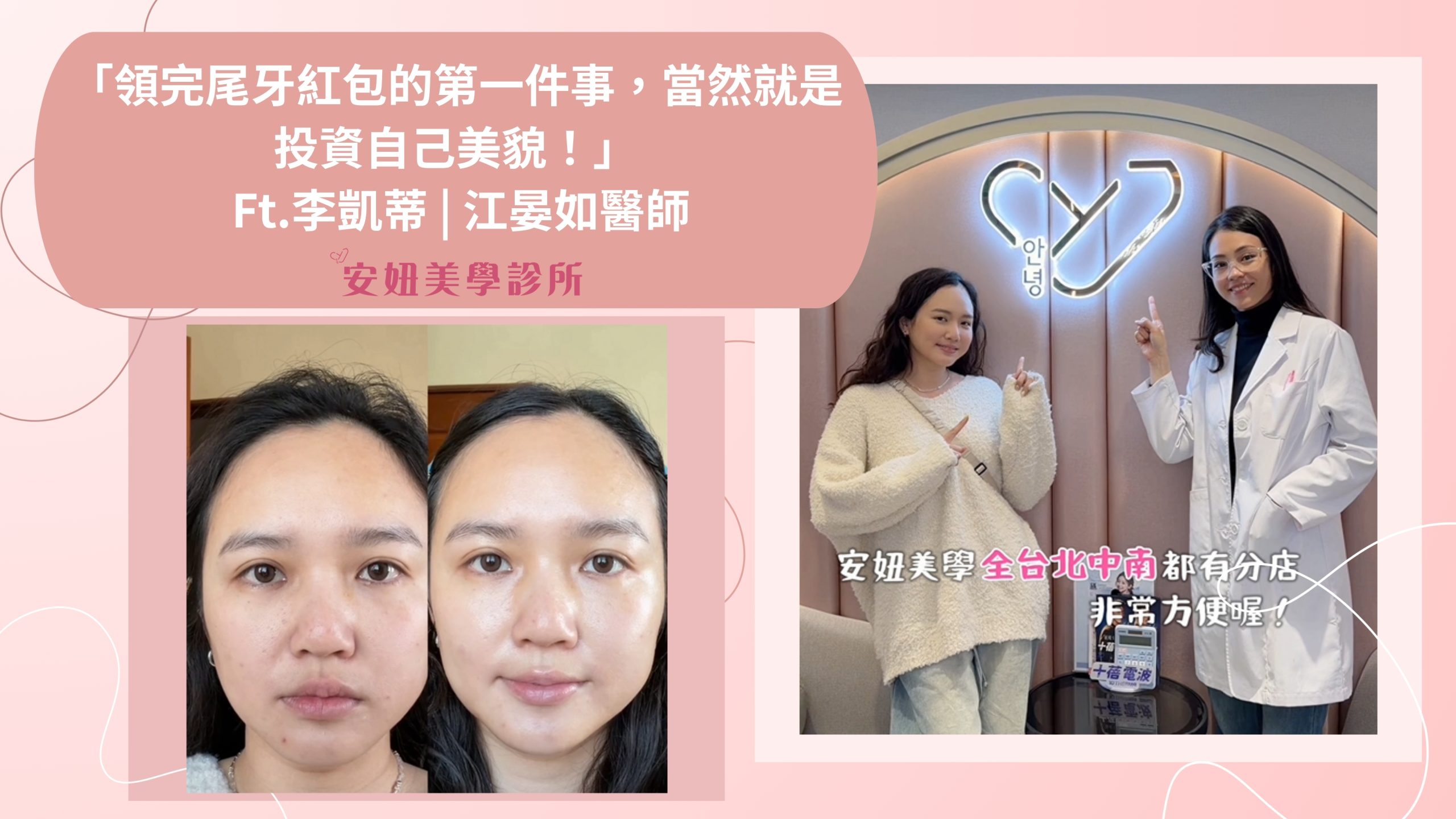 播放 播放 熱門療程 美麗見證 安妞與您 一起變美 分享自信 了解更多 「咀嚼肌是我很在意的臉部問題~所以一直都有固定施打保養!」 Ft.陳怡瑄| 鍾祺之醫師 「領完尾牙紅包的第一件事,當然就是投資自己美貌!」 Ft.李凱蒂| 江晏如醫師 「雖然平常真的蠻認真保養的 但還是會希望臉部肌膚再更精緻一點!」 Ft.郁瑄| 劉秉芬醫師 「每天接送小孩被太陽追著跑,還好有星皮秒幫我把狀態救回來!」 Ft.Linda | 邱正恒醫師 「在忙到沒時間照鏡子的日子裡,也要好好照顧自己!」 Ft.Una | 謝旻益醫師 「一直希望自己唇型可以立體、改善原本的厚度 增加一點微笑線!」 Ft.芷瑄| 林姿吟醫師 安妞三大保障