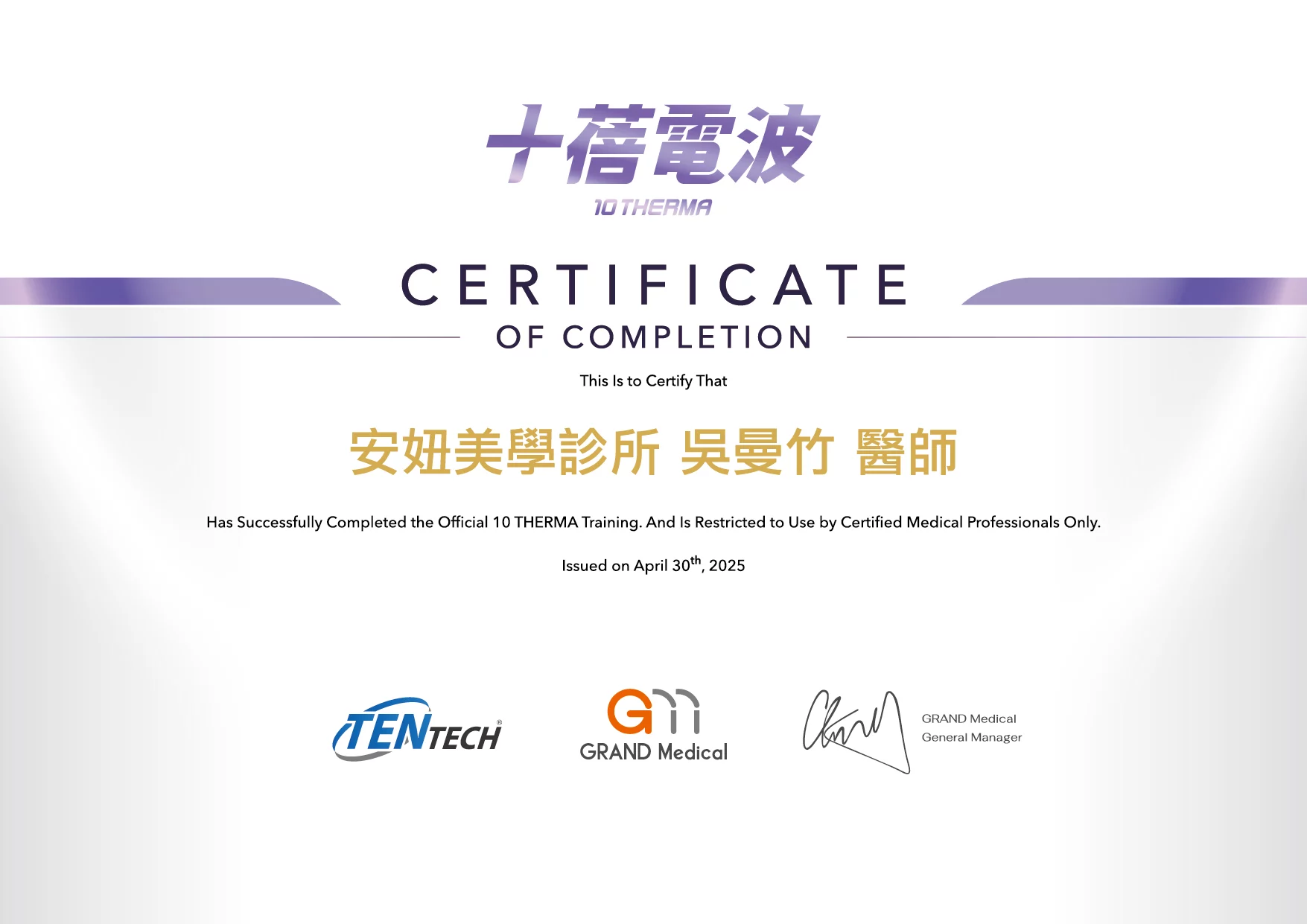 - Thermage 鳳凰電波 原廠認證醫師