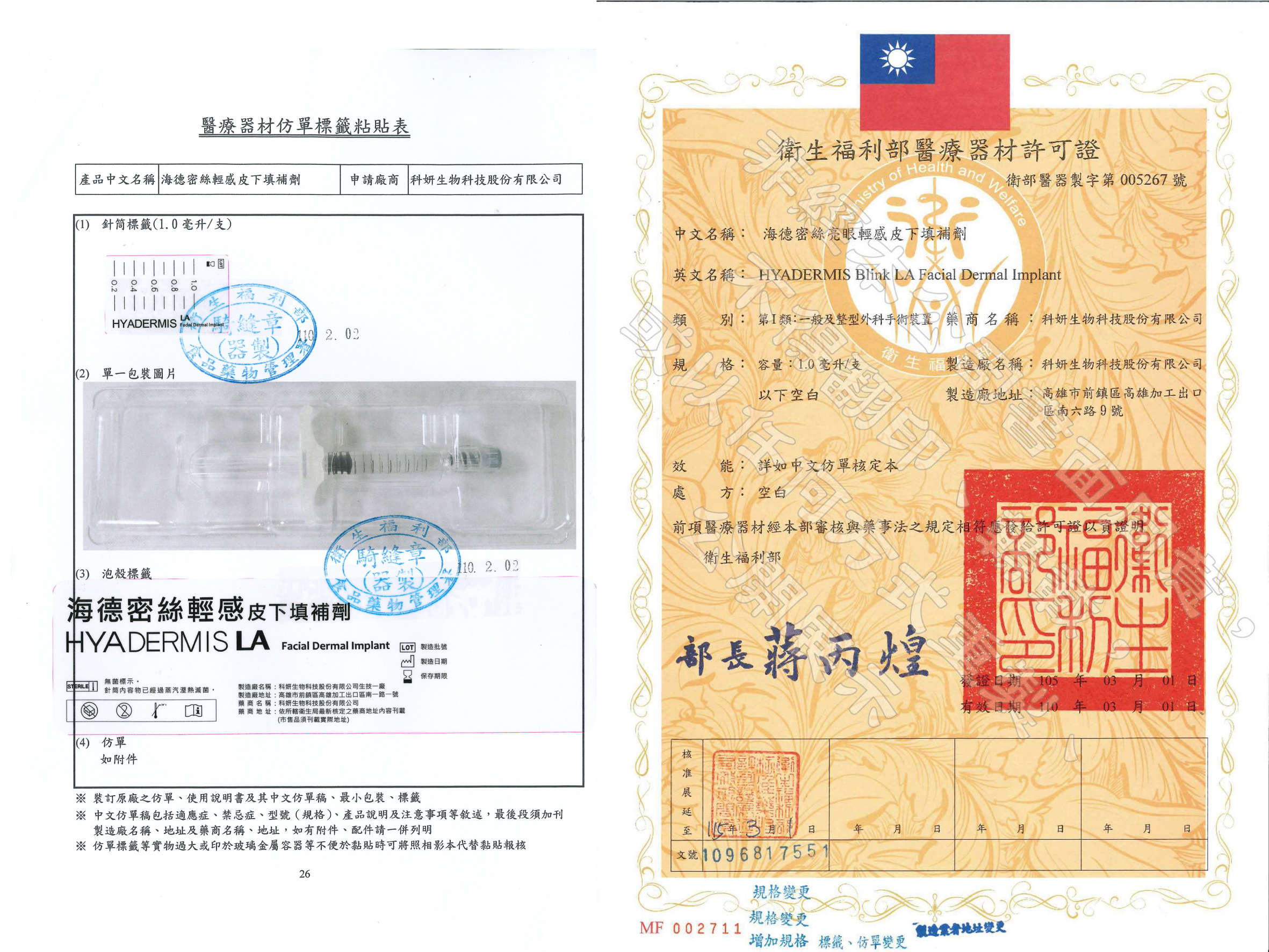 - 英文名稱:HYADERMIS Chic LA Facial Dermal Implant