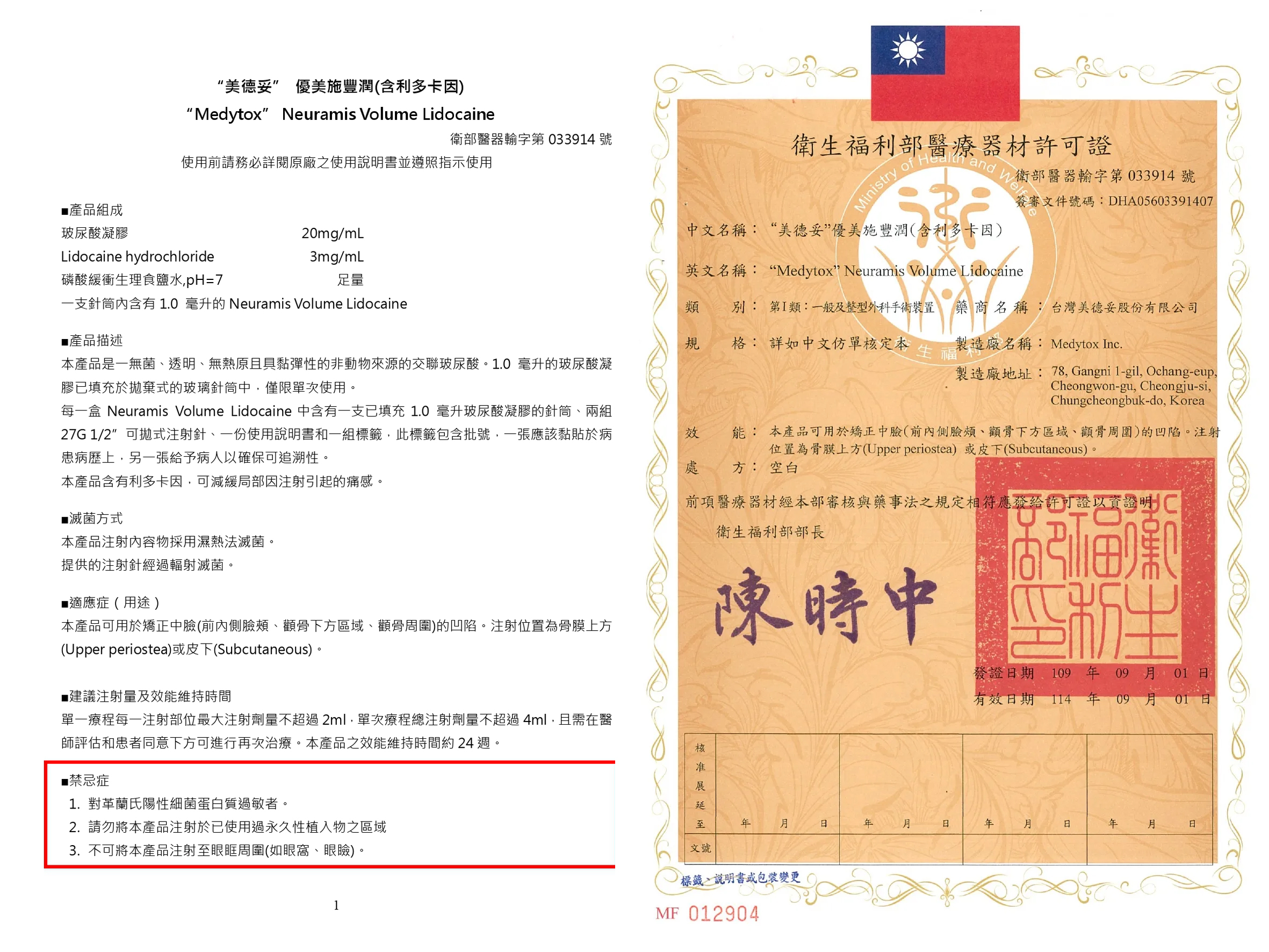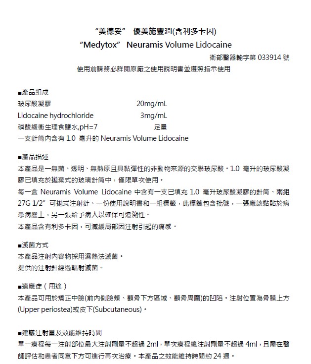 “美德妥” 優美施豐潤(含利多卡因) “Medytox” Neuramis Volume Lidocaine